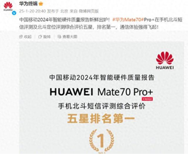 華為又一個五星排名第1!Mate 70 Pro+的通信新技術(shù)